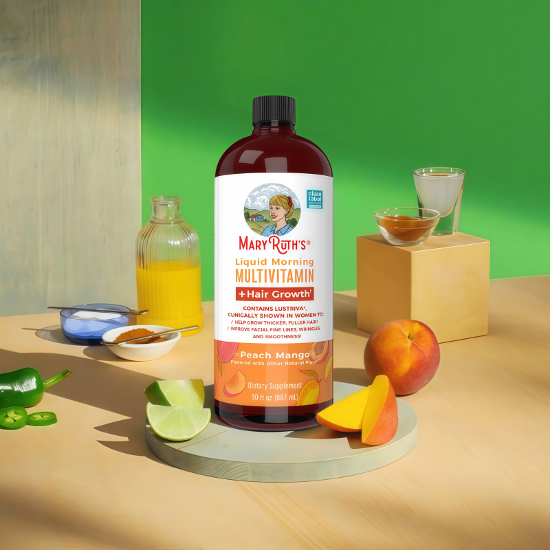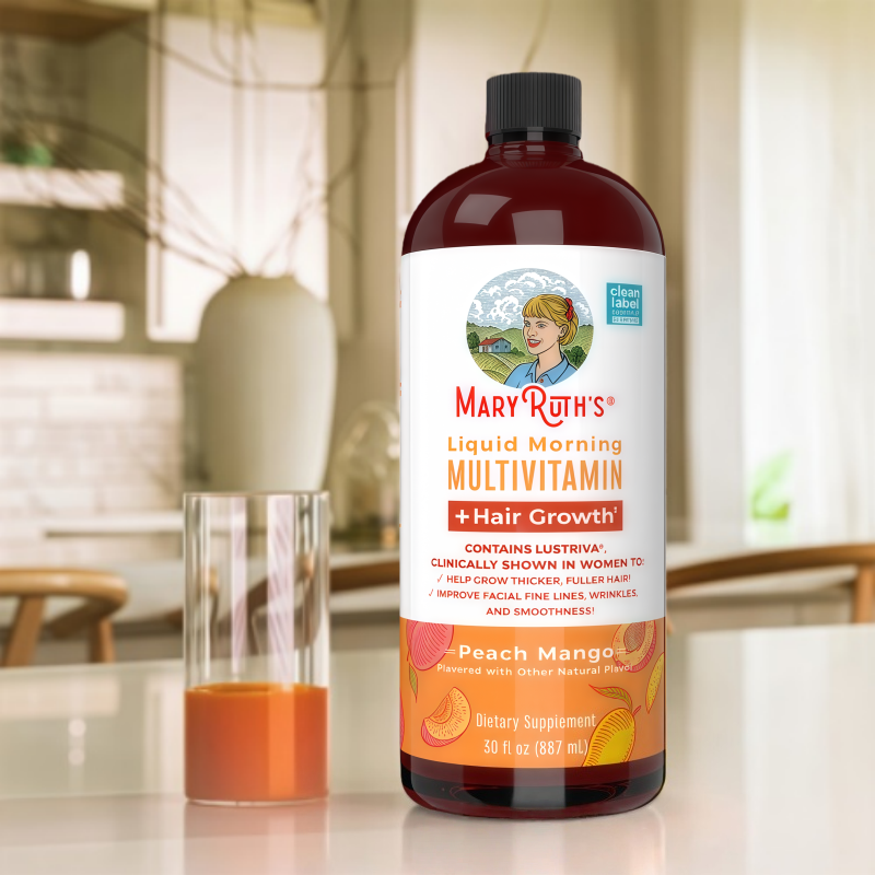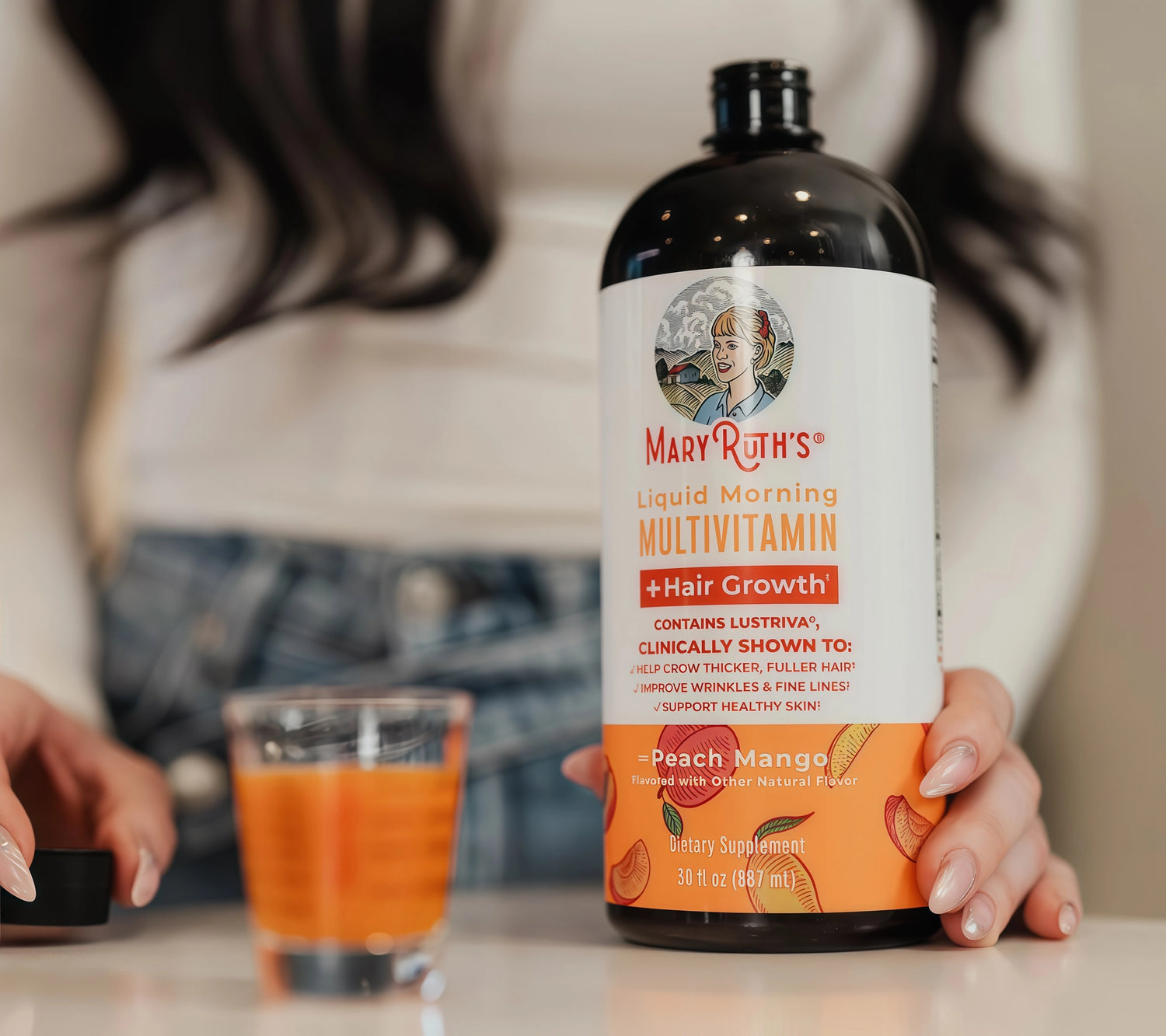 Our best-selling multivitamin to support your beauty from within! With clinically shown Lustriva, this delicious liquid multivitamin helps support thicker, fuller hair and smoother skin in women — while also delivering daily wellness support with essential nutrients to support energy metabolism, immunity, and more.
